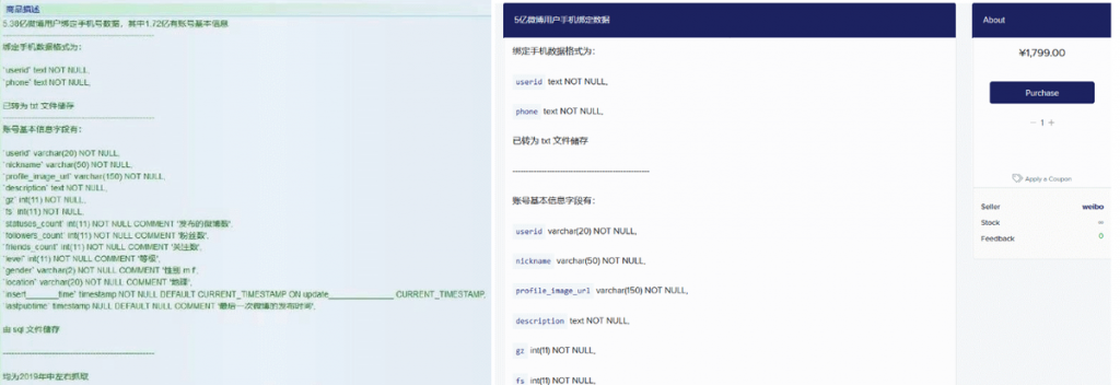 近日5.38亿条微博数据在暗网销售,1.72亿条有账号基本信息,比如手机号,其中不乏明星大V,这些数据的暗网售价0.177比特币,折合人民币不到7500元,之后微博回应,手机号是去年被人利用通讯录接口批量导入,暴力匹配出来几百万个账号和昵称,并没涉及身份证、密码等敏感信息。