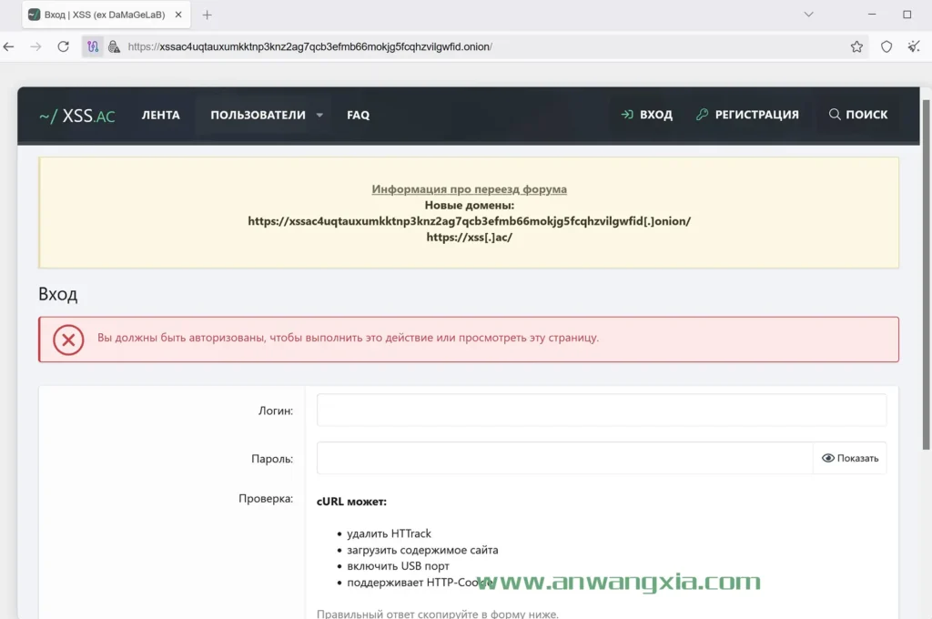 经本站(anwangxia.com)测试,目前,其原先的明网域名XSS[.]as、暗网域名(xssforumv3isucukbxhdhwz67hoa5e2voakcfkuieq4ch257vsburuid[.]onion)均无法正常访问,仅可使用全新域名进行访问。
